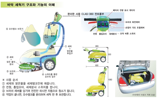 작업자 1인이 1시간에 900㎡면적(약 270평)을 청소가능