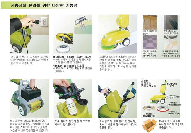 편리성 - 분사, 브러시, 잔수흡입 3기능이 원터치 버튼으로 작동하여 가전제품처럼